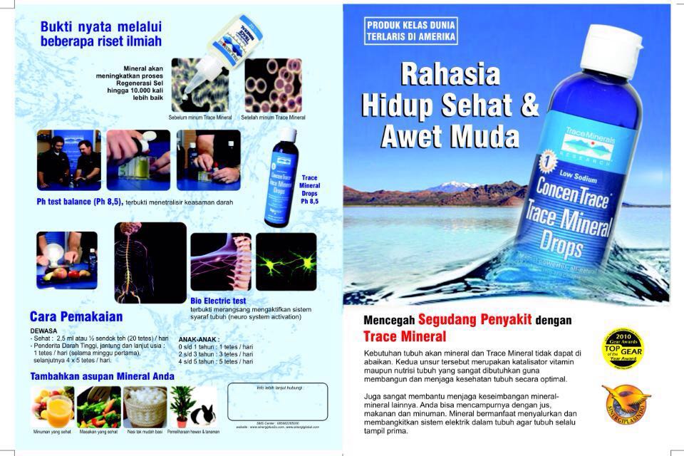 saran : Kami sdh membuktikan Trace Mineral selama 24 Th. banyak teman dan tetangga yg sdh membuktikan khasiatnya mulai dari sakit gigi mata dll.